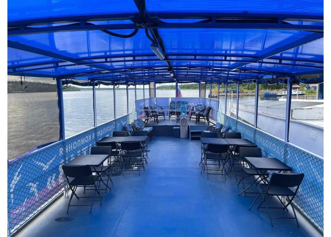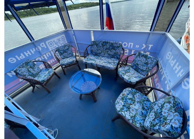 - Верхняя прогулочная палуба разделена на 2 зоны: зал с караоке и уютная веранда с плетеной мебелью;